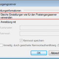 Wählen Sie Gleiche Einstellungen wie für den Posteingangsserver verwenden aus und klicken Sie dann auf OK. Nun haben Sie die Einrichtung von SMTP-Auth abgeschlossen und Sie können die Einstellungsdialoge wieder schließen.